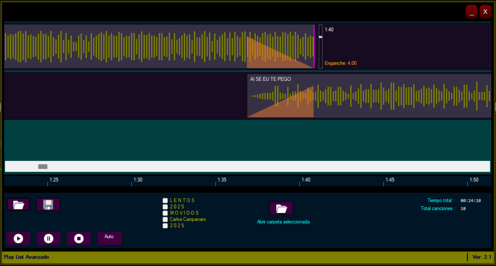 Duración playlist: Conoce al instante la duración total de tu lista de reproducción activa. Es ideal para planificar tus sets y saber de antemano cuánto durará tu selección musical.
